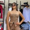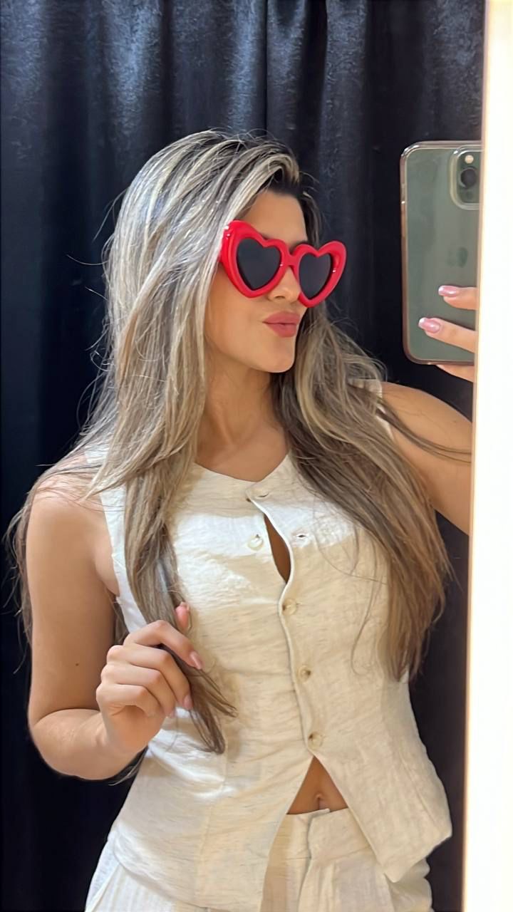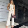 Chaleco y pantalon de lino anchos de cintura alta con botones