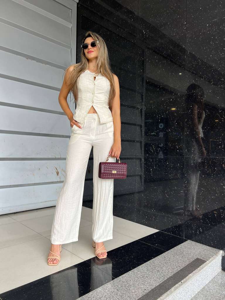 / Chaleco y pantalon de lino anchos de cintura alta con botones