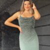 Vestido Midi de lentejuelas pequeñas con cuello bebe y tiras