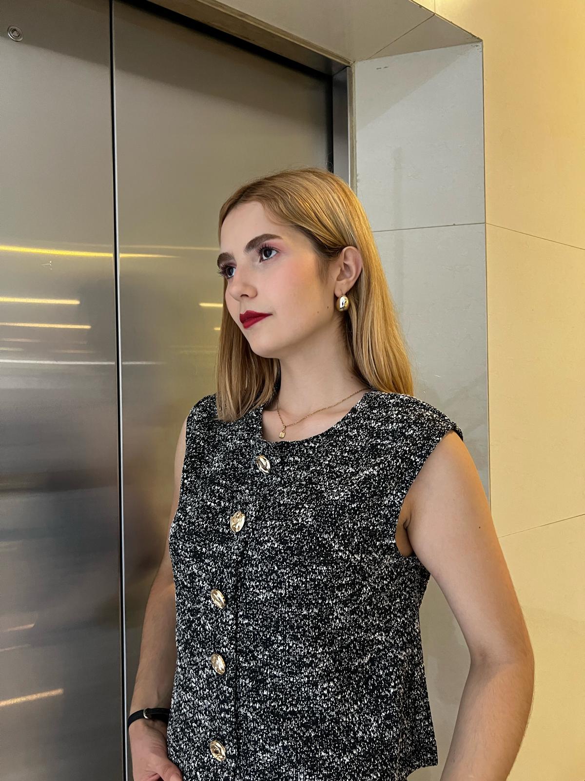 Set de tweed con short y chaqueta con botones dorados