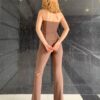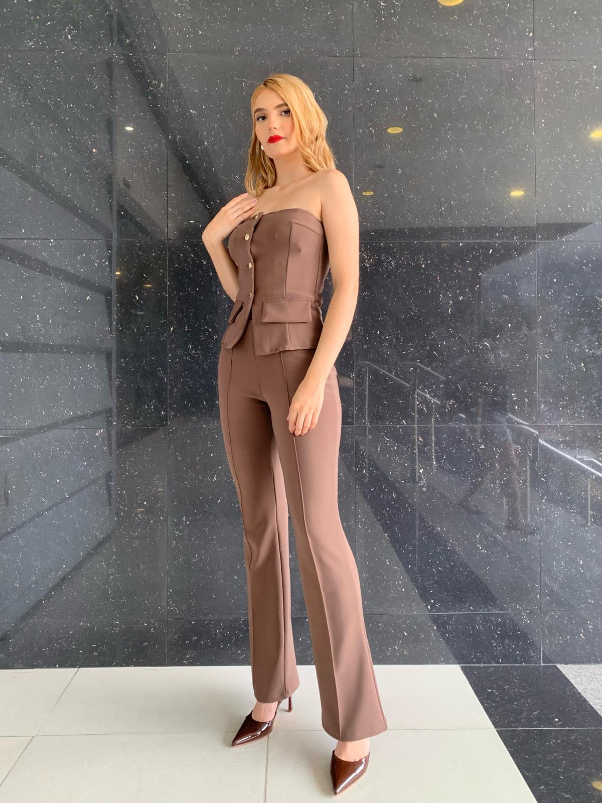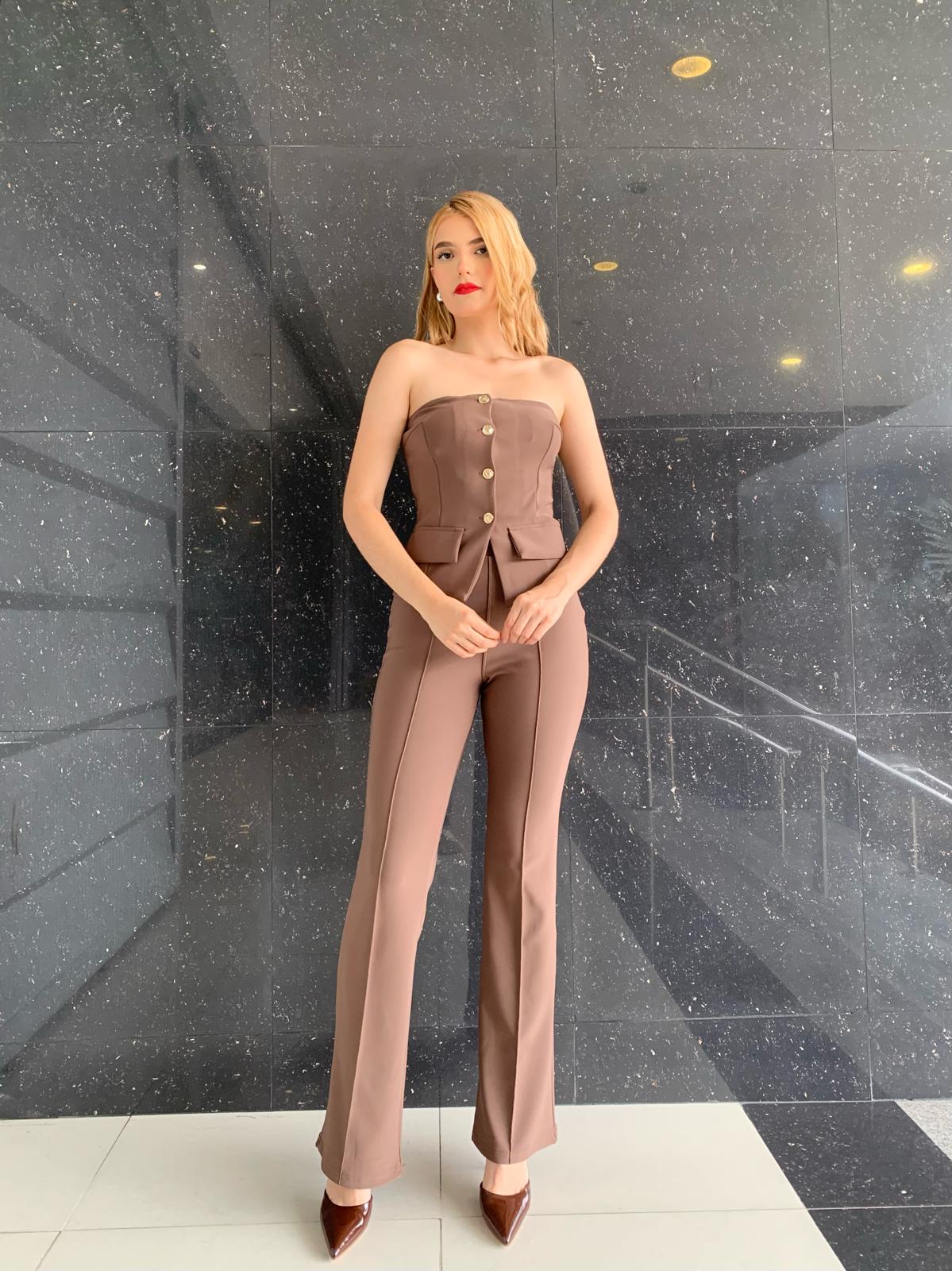 Set Top Strapless con Botones y Pantalón Bota Acampanado cantidad