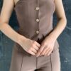 Chaleco y pantalon de lino anchos de cintura alta con botones