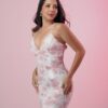 VESTIDO CORTO CON COPAS Y TIRAS DE LENTEJUELAS Y AMARRE EN LA ESPALDA ESTAMPADO DE FLORES
