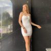 VESTIDO CORTO MINI CON DETALLE DE LAZO DE CRISTAL cantidad