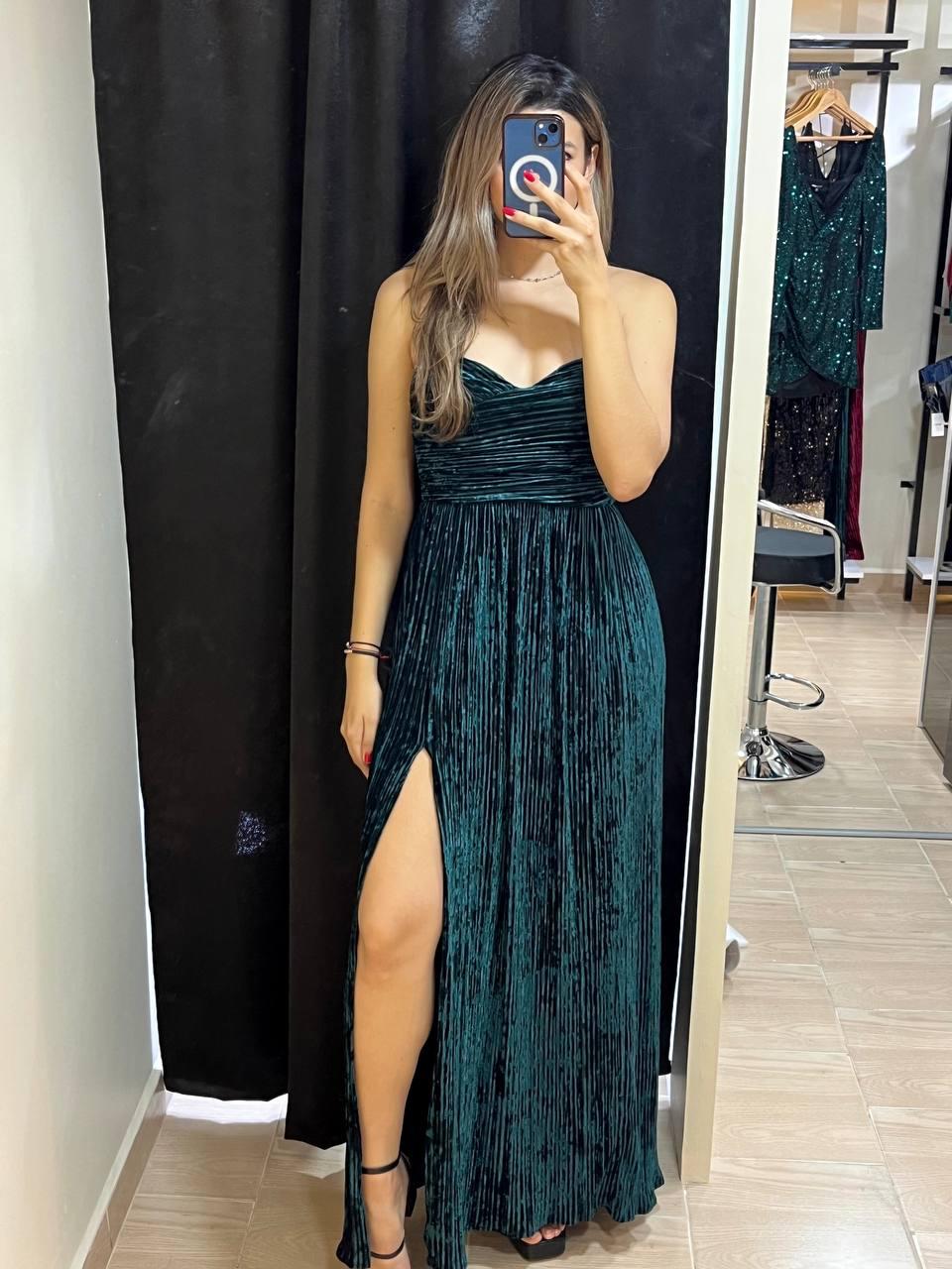 Vestido de largo Straple corte corazon con apertura en la piernaVestido de largo Straple corte corazon con apertura en la pierna