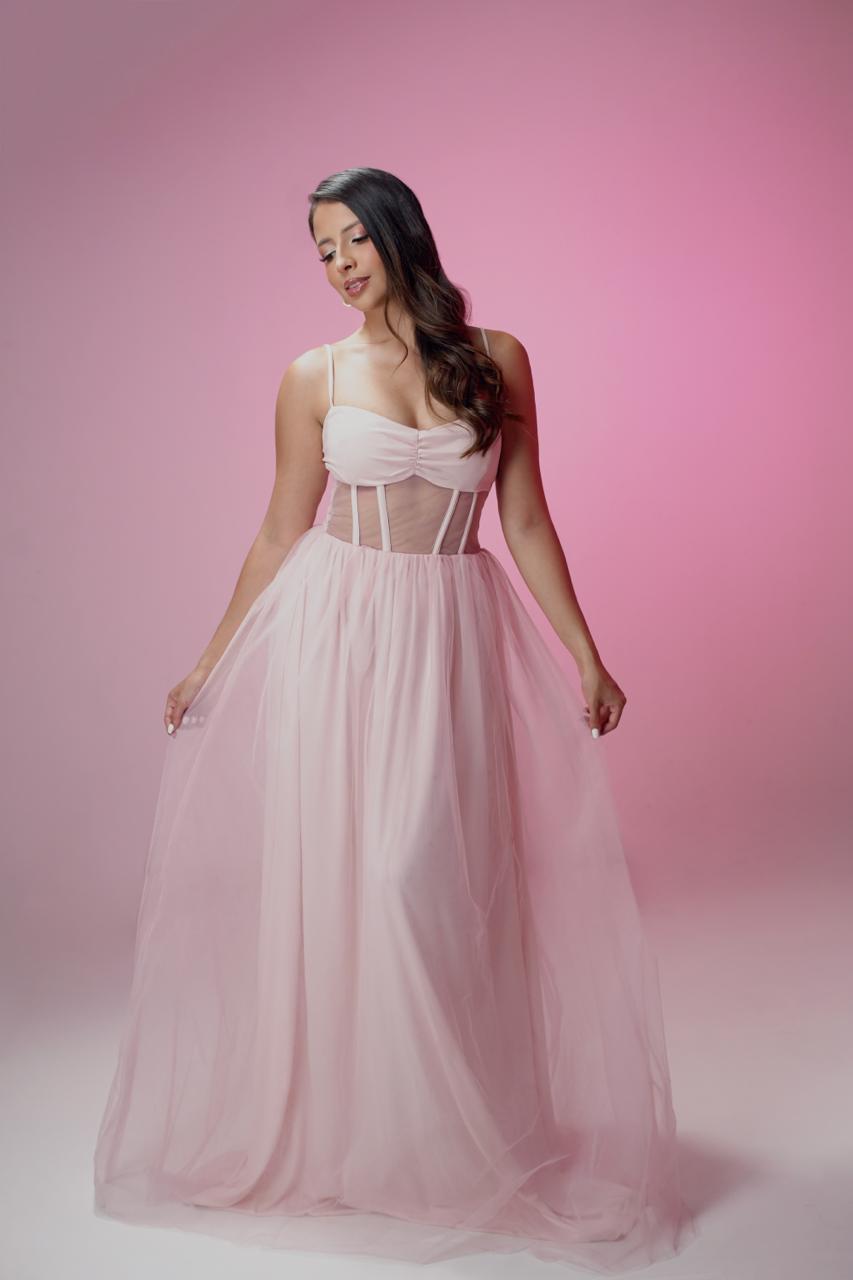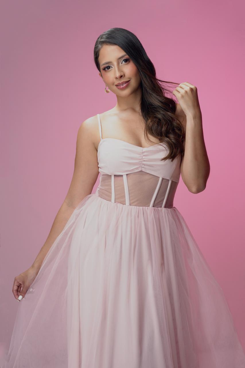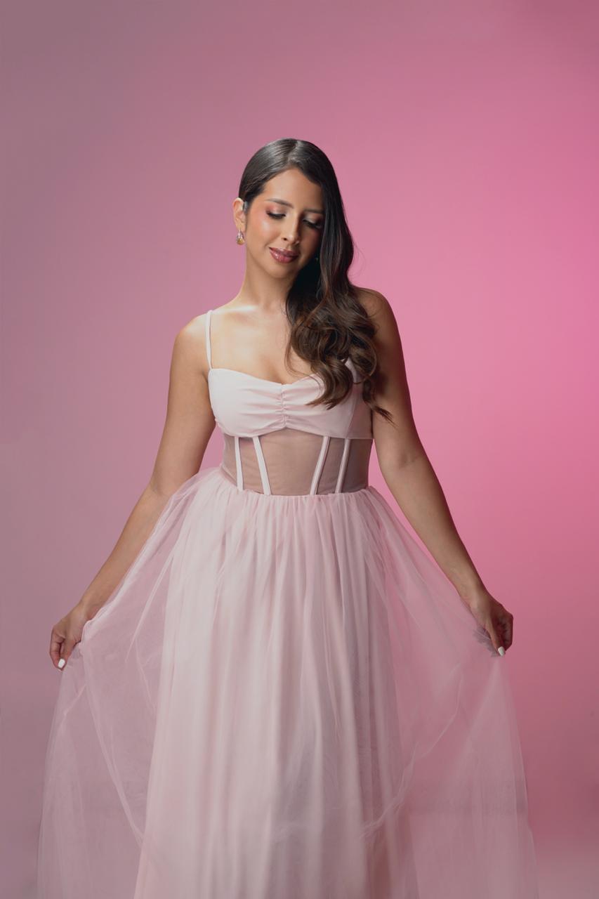 Vestido de malla de tull con tirantes y transparecia cantidad