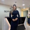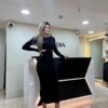 Vestido estilo suéter largo con frente retorcido manga larga