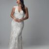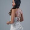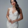 Vestido largo con copa bordado de flores en canutillo, amarre en la espalda