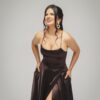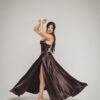 / Vestido largo de seda con copas y tirantes