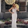 Maxi vestido con perlas y tiras con degradado